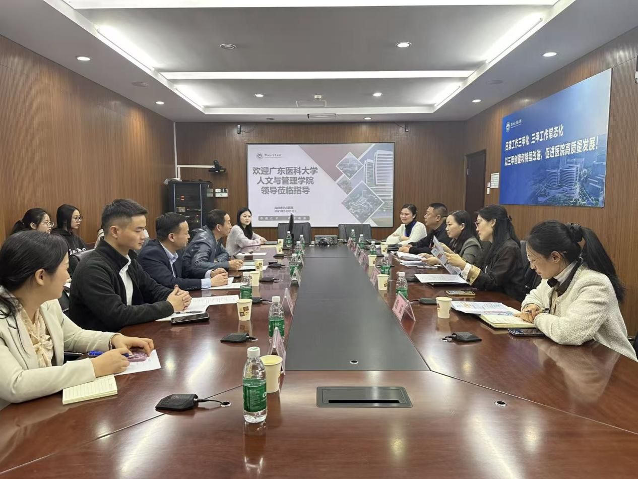 上午,翟方明副院长一行走访了香港大学深圳医院和深圳大学总医院。两家医院围绕自身发展情况、运行管理模式及实践教学安排,介绍了我院学生的实习情况,并对学生的专业素养和学习态度给予积极评价。双方重点围绕学生培养质量提升、实习内容深化及专业建设方向进行了交流。香港大学深圳医院侧重分享了其在医院改革创新和运营管理方面的经验,探讨了学生联合培养和师资合作等内容;深圳大学总医院则结合综合性医院优势,就实习管理、医保专业建设及医保政策实践合作等方面与学院进行了深入探讨。