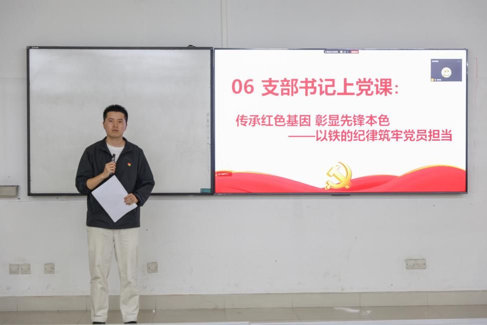 会议最后,党支部书记揭志辉同志作“传承红色基因,彰显先锋本色——以铁的纪律筑牢党员担当”为题的专题讲话。他结合李大钊等革命先烈的事迹勉励全体党员,强调党员同志一要深学先烈精神,传承红色基因,始终保持对党的赤胆忠心;二要严守纪律,注重自我品德修养,时刻自省自励;三要发挥党员的先锋模范作用,积极响应号召,提高党性修养。他强调,加入中国共产党是光荣,更是使命和责任,党员同志要以严格的标准要求自己,彰显责任担当。