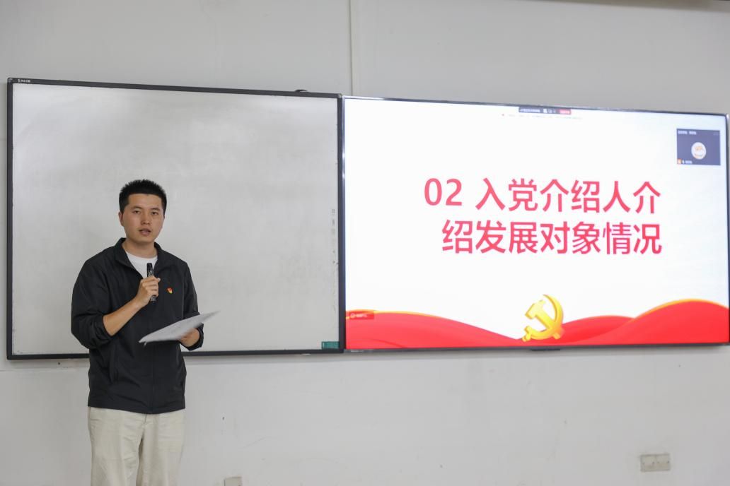 会上,13名党员发展对象依次上台向党组织汇报他们对党的认识、入党动机、个人履历、家庭和社会关系以及需要向党组织说明的问题。随后,入党介绍人揭志辉同志介绍了13名党员发展对象在考察期间的表现,并进行全面客观的评价。在考察期间,党员发展对象以党员标准严格要求自己,充分发挥先锋模范作用,并对其能否入党表明意见。