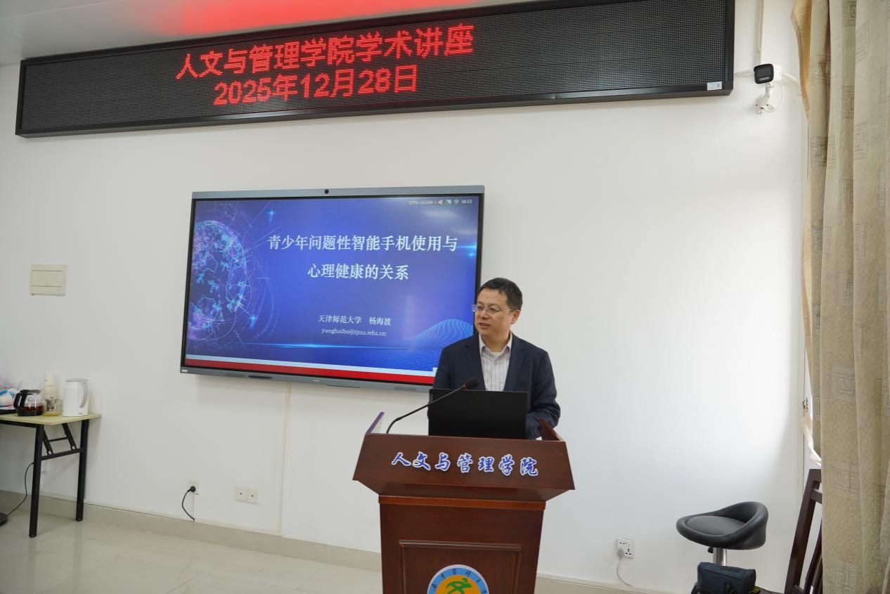 12月28日上午,由学校科学技术部和人文与管理学院联合主办的2025年第58期学术讲座在学院会议室举行。讲座主讲嘉宾为天津师范大学白学军教授、杨海波教授。学院黄祖辉院长、谭健烽副院长、心理学学科教师以及研究生参加本次讲座。讲座由谭健烽副院长主持。