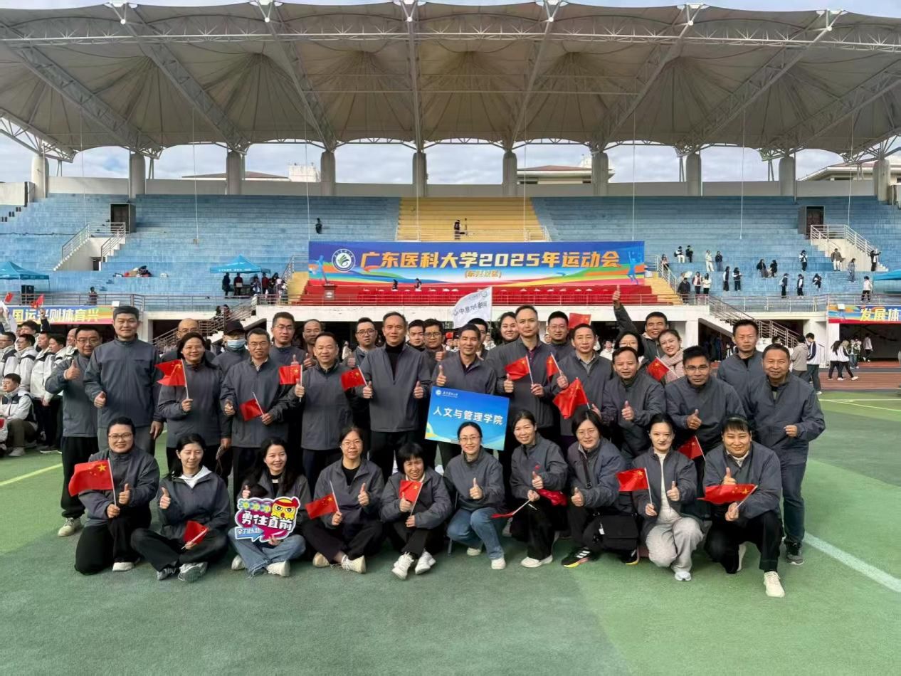 秋高气爽,暖阳如沐。2025年11月21日至22日,广东医科大学2025年教职工运动会在东莞校区运动场隆重举行。人文与管理学院积极组织40余名教职工组成代表队,全程参与田径、体测与趣味三大类项目的角逐。经过两天的奋勇拼搏,学院教职工团队凭借出色的整体发挥与紧密的团队协作,最终荣获团体总分第八名的优异成绩,展现出昂扬向上的精神风貌。