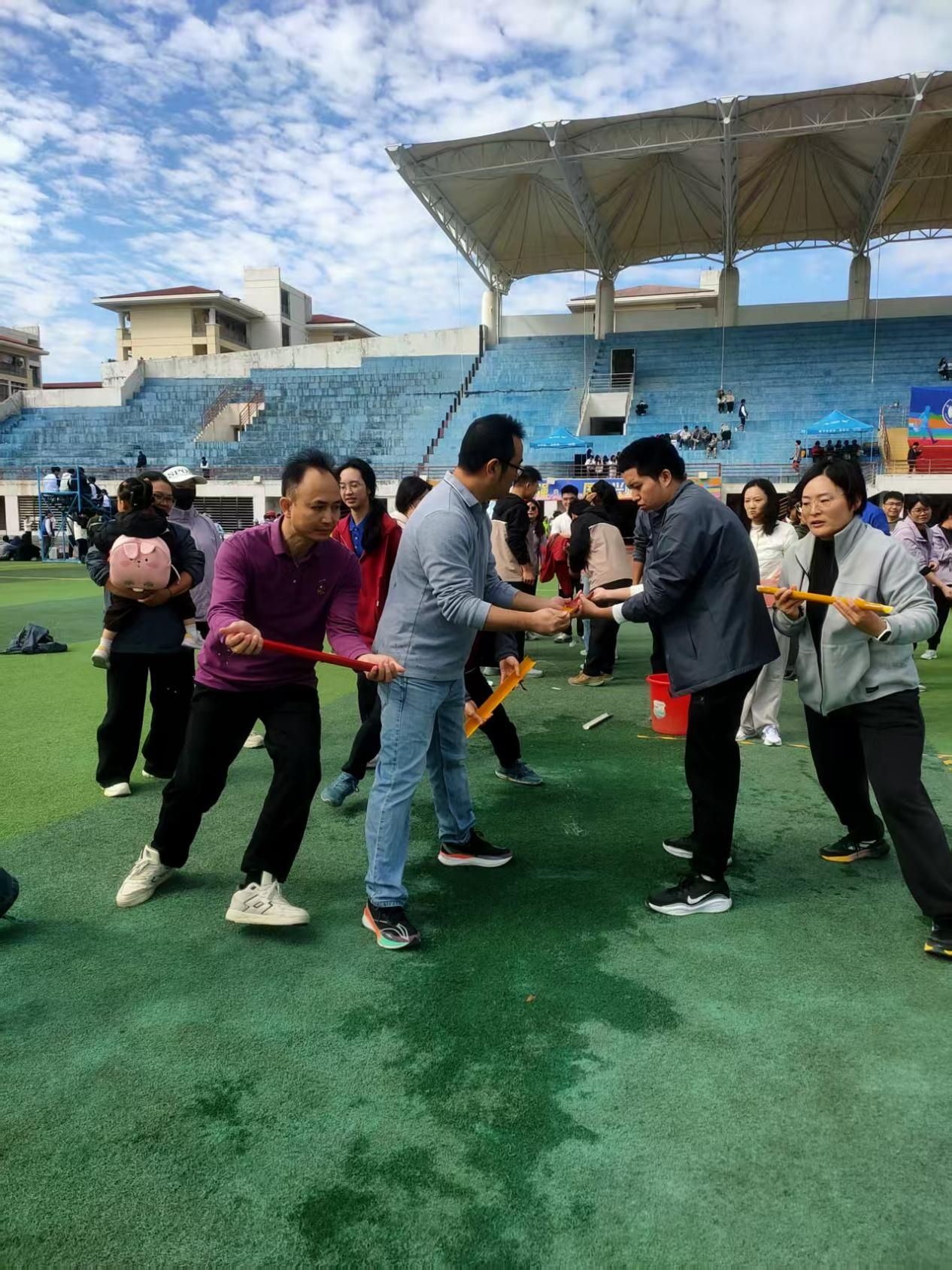 趣味项目赛场同样捷报频传,欢笑与拼搏交织。由邓建壮副书记带领的队伍参与了全部八个趣味项目的比赛,其中七项跻身前八名。尤其在集体跳绳和旋转布条两个项目中,队员们配合默契、发挥稳健,双双斩获第三名的好成绩,充分体现了教职工之间高度的协作精神与集体荣誉感。