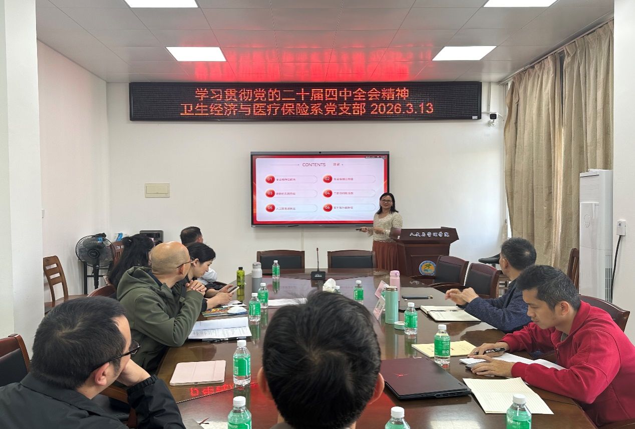 3月13日,卫生经济与医疗保险系党支部召开专题会议,深入学习贯彻党的二十届四中全会精神。会议由党支部书记刘海兰同志主持,支部全体党员参加了此次学习。学院党委书记、本支部党员陈明同志参加会议,并作总结发言。